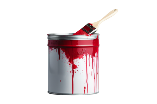 Vintage style illustration of a paintbrush splashing in a metal paint can, with dynamic splashes and a transparent background, perfect for creative projects