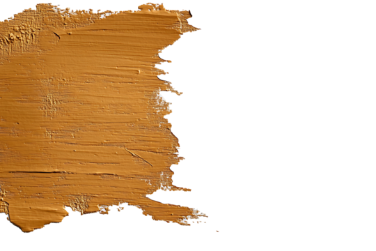 A dry-brushed sienna stroke with visible grain marks and uneven paint distribution on a white surface