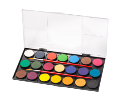 Watercolor paint and brush