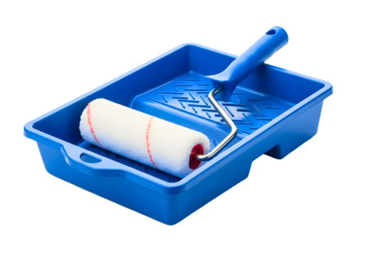 High resolution red paint roller tool for painting walls and ceilings, diy home improvement project, isolated on transparent background