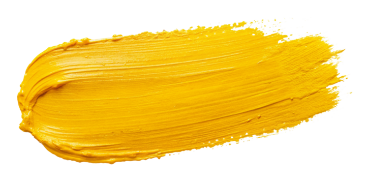 A yellow brush stroke with yellow paint splatters on a white background Isolated on transparent background, PNG