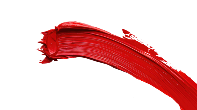 Thick, vibrant red paint creates a textured, sweeping stroke on transparent background