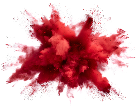 bright red holi paint color powder festival explosion burst isolated white background. industrial print concept background