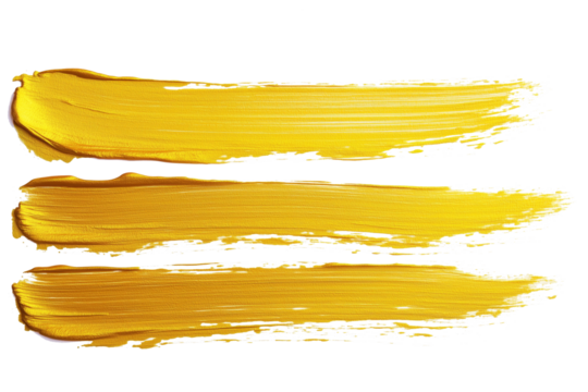 Collection set of yellow gold texture strokes isolated on white, cut out