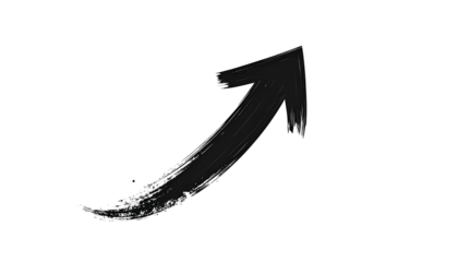 Hand drawn arrow. Brush painted going up direction grunge arrow. Transparent PNG