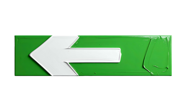 Green and white painted rectangular sign with a left arrow on black background