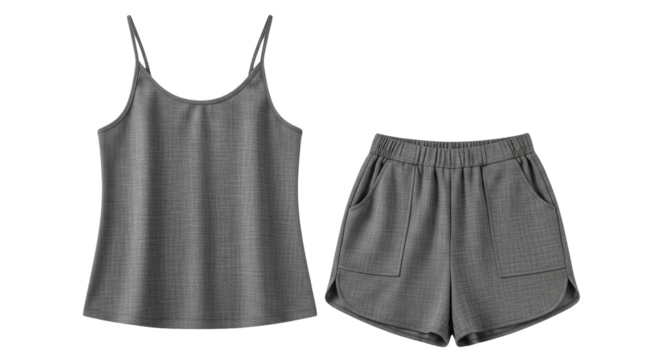 Men's sportswear grey suit tshirt mockup, shorts , pajamas  and trousers isolated on transparent background. Man grey tracksuit cloth mock up template for design. PNG