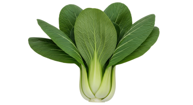 Fresh pak choi vegetables with vibrant green leaves, showcasing crisp texture and nutritional value, isolated on clean transparent backdrop