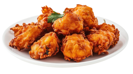 Plate of golden onion pakora isolated on transparent background