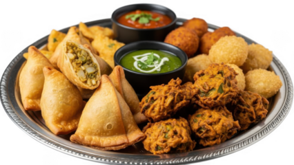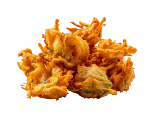 Delicious Indian onion pakora fritters, a popular savory snack, served on a transparent background, perfect for showcasing authentic Indian cuisine and street food