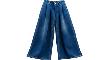 Isolated wide-leg denim pants on transparent background — high-resolution PNG cutout for apparel mockups, fashion design, e-commerce listings, clothing catalogs, and branding