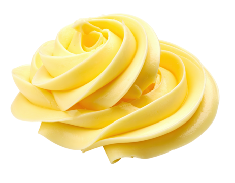 Close-up of swirls of pale yellow butter, resembling a flower or rose