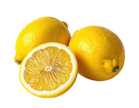 Fresh green pomelo fruit whole and halved with leaves showing its pale yellow segmented flesh.