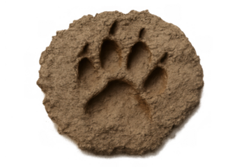Paw print impression in earth material showing animal nature, wildlife tracking, and fossilized discovery, transparent background