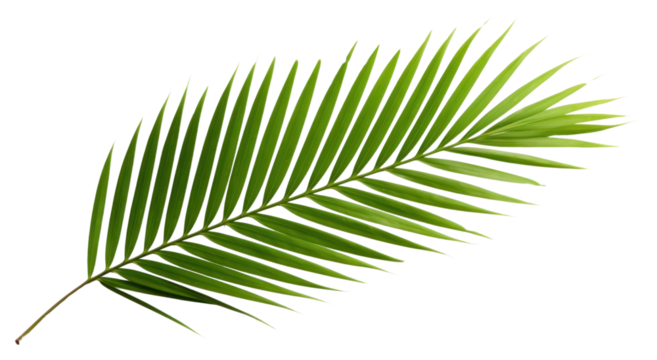 Ai generated image of a vibrant green palm frond, isolated on transparent background