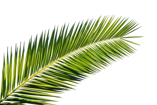 palm Tree Leaves isolated on transparent background. PNG palm tree with green leaves isolated on white background. corner palm tree foliage PNG. Isolated palm tree branch on transparent background PNG