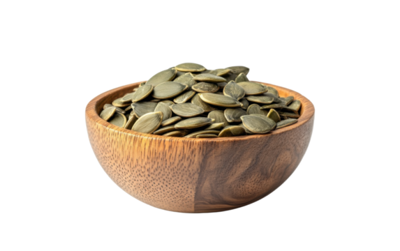 Bowl of seeds is sitting on a white background
