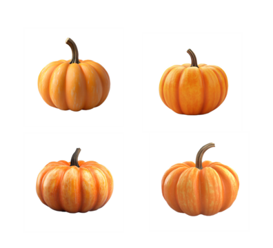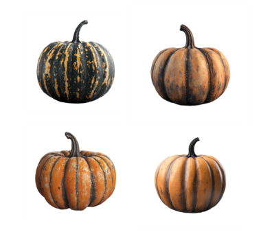 Isolated set of selected pumpkins. PNG clipart for halloween cards, thanksgiving, decoration and sticker printing