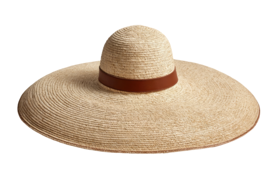 Wide-Brimmed Straw Sun Hat Isolated on White Background PNG