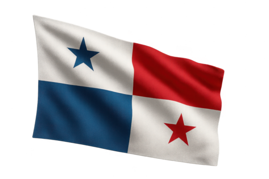 Panama's Emblem: A studio-quality depiction of the Panamanian flag, a symbol of the nation's pride, meticulously presented to showcase its intricate details. PNG, Transparent Background