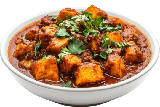Delicious chicken or paneer tikka masala isolated on transparent background, vibrant