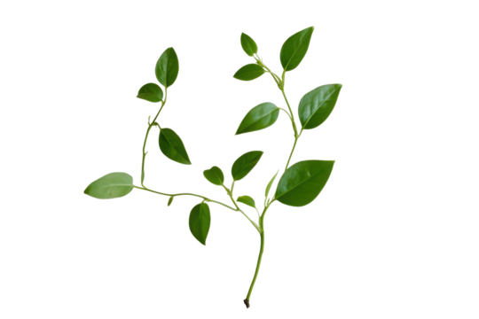Green plant branch with leaves isolated on transparent background. Andrographis paniculata isolated on white background.