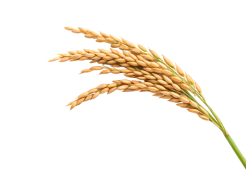 Close-Up of Ripe Rice Panicle with Dew Drops, Isolated on White Background