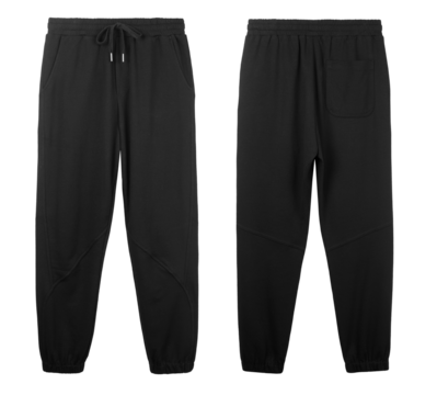 2 Set of white and light grey gray, front back view sweatpants jogger sports trousers bottom pants on transparent background, PNG file. Mockup template for artwork design