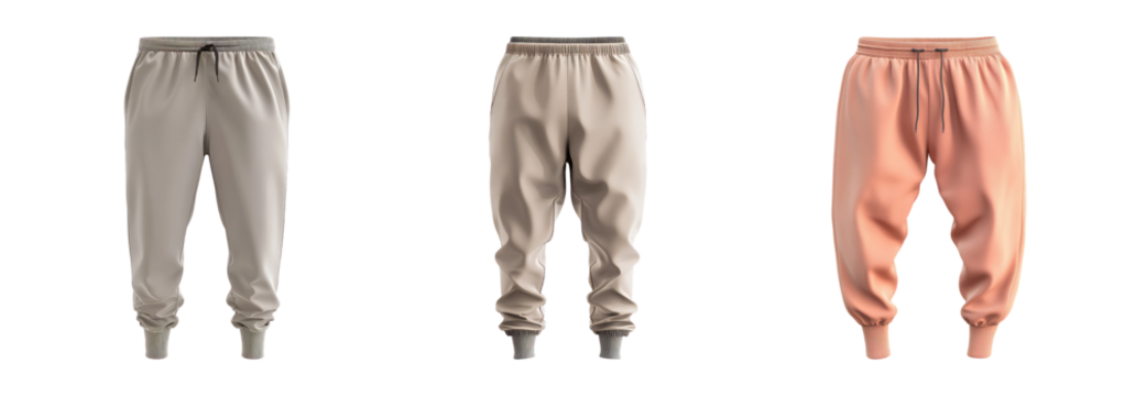 Female Beige Pants, tan wide pants, sweatpants mockup, front and back view, transparent background