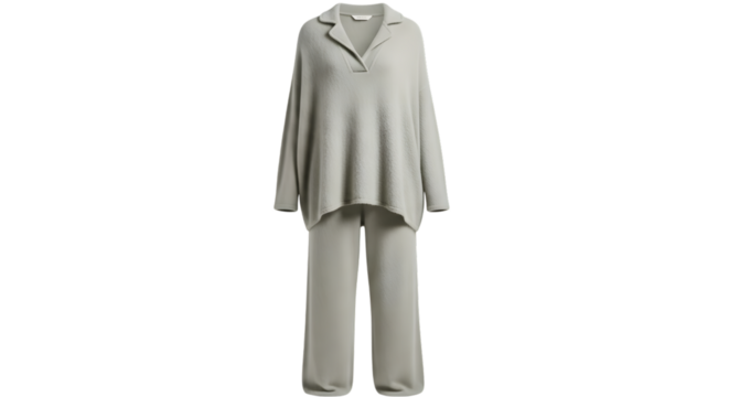 Gray pajama set isolated on transparent background for comfortable sleep at home