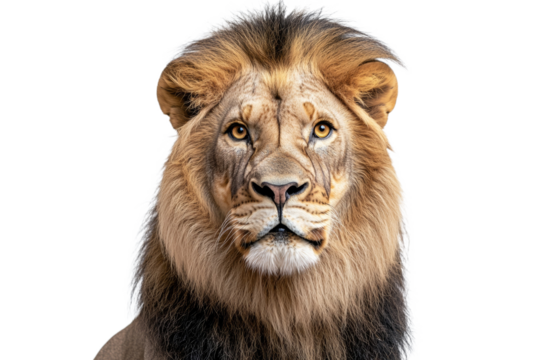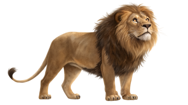 Side view of a Lion walking, looking at the camera, Panthera Leo, 10 years old, isolated on a white transparent background