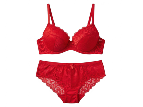 Red lace bra and panties set isolated on transparent background