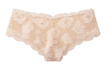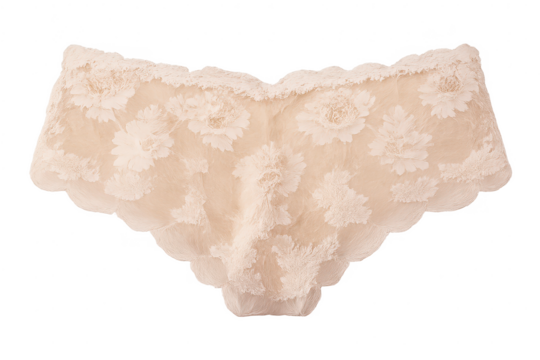 Floral lace panties on a transparent background, lingerie closeup shot.