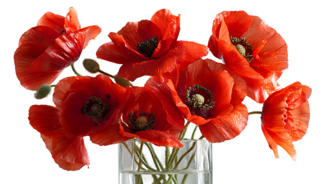 Red poppy creating remembrance concept, symbolizing peace, memory, and tribute with transparent background