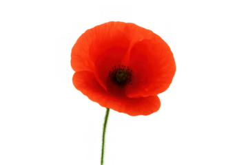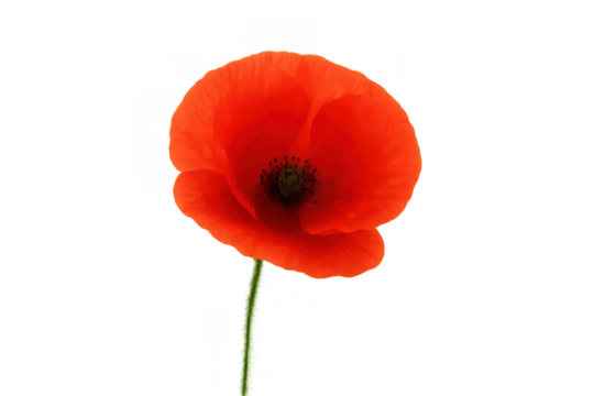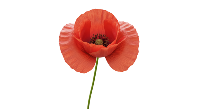 Red poppy flower blooming, a symbol of remembrance and peace, standalone transparent background element