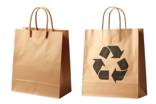 Brown eco friendly recyclable shopping paper bag on transparent background cutout, PNG file. Mockup template for artwork graphic design