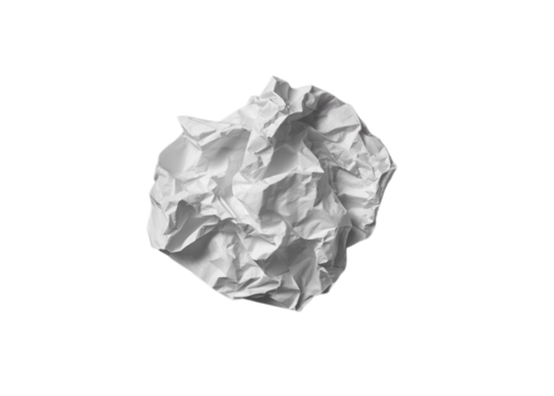 White crumpled paper balls isolated on a transparent background, PNG. High resolution.