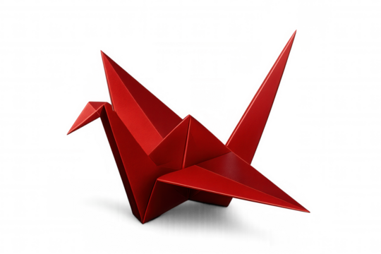 Origami paper crane, folding art from paper. Craft representing japanese culture, hope, and peace. Transparent background