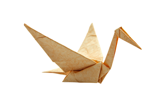 Beautifully Folded Paper Crane Origami on a White Background Perfect for Arts and Crafts Projects, Educational Materials, and Artistic Expressions.