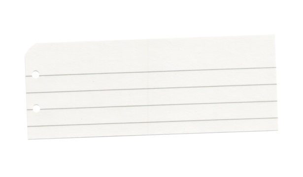 Lined notebook paper with torn edge and punched holes, blank white sheet for memo or note on transparent background