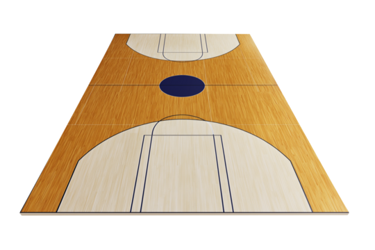 3D glossy indoor basketball court wooden floor piece, isolated on  transparent  background