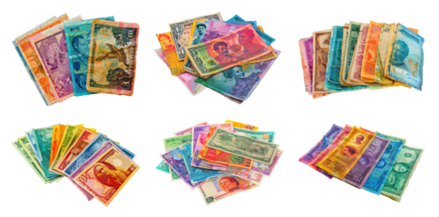 Set of colorful assortment of international banknotes, cut out - stock png.