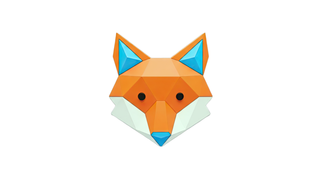Geometric Fox Head Sculpture with Orange, White, and Blue Accents