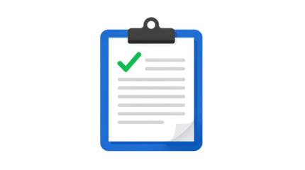 Blue clipboard holding paper with green checkmark