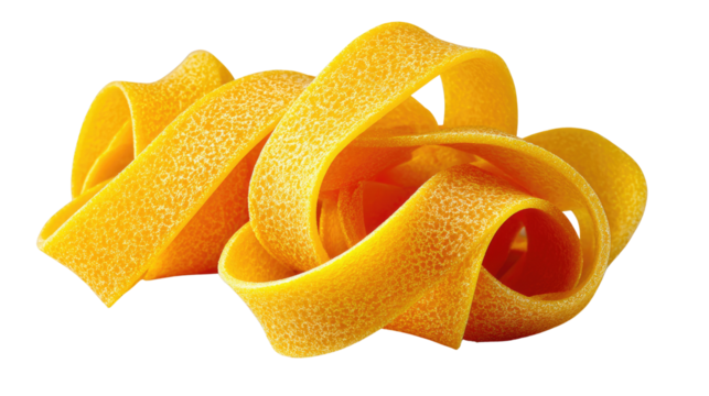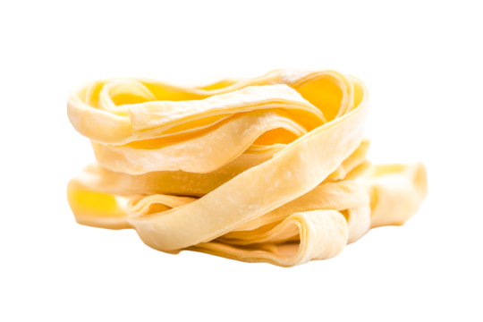 Close up view of pappardelle pasta showcasing elegant waves and curves, isolated on a transparent background, ideal for enhancing food related projects and culinary designs