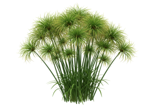 Isolated clump of papyrus plants forming dense bushlike structure in summer daylight scenery