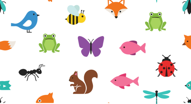 Whimsical Wildlife Parade: Colorful Creatures in Playful Cartoon Style