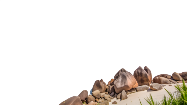 Tropical beach with palm trees and ocean view, isolated on transparent cutout background