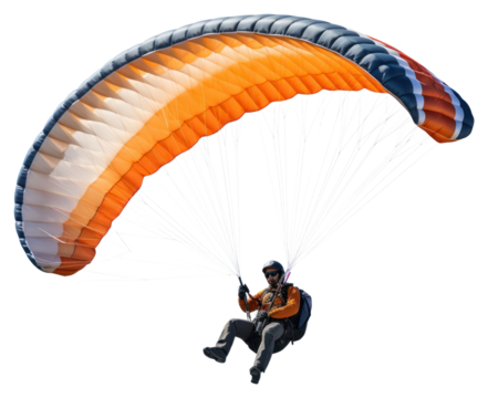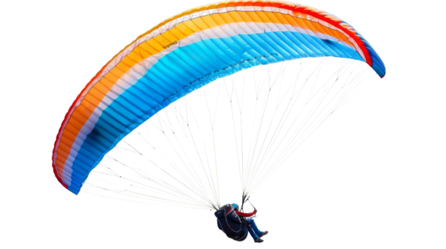 Vibrant paragliding wing gliding against transparent backdrop, perfect for dynamic design composites and graphic projects
