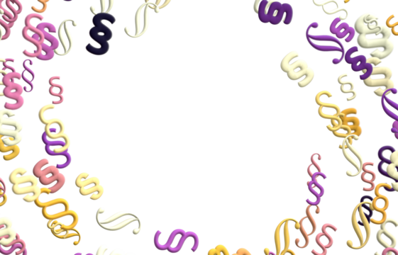 Transparent red blocks with section symbols scattered
